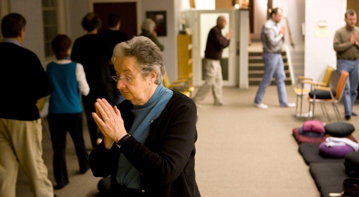 When we gather for Zen practice, we sit for 2-3 periods of zazen alternating with 5-10 minutes of walking meditation, called kinhin. Kinhin gives you the opportunity to get circulation in your legs moving again, but it is not a stroll or a break in practice of Zen. While you are walking, your attention is on your walking in harmony with others, breathing, being where you are right here, right now. If you start daydreaming or thinking, bring your attention back to your legs walking, your breath, the harmony of walking together.